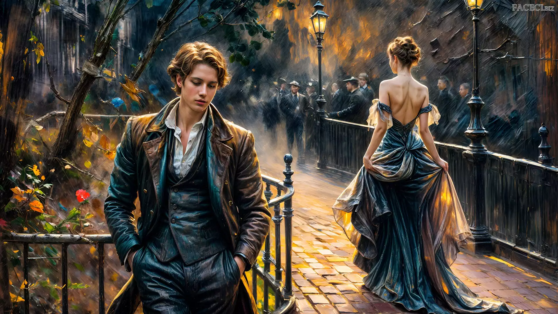 Wieczór, Ulica, Grafika, Mężczyzna, Kobieta - faceci.biz
